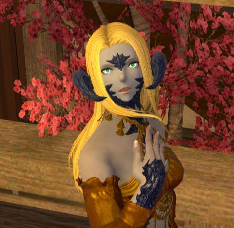 Surname: OnishiForename: HikariRace: Au'ra | XaelaSex: Female | CisgenderSexual Orientation: BisexualAge: 23Eye Colour: Green with light blue umbral rings.Hair Colour: Blond